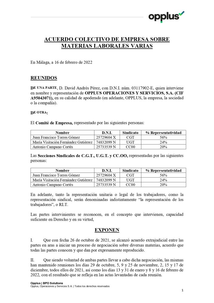 Después de muchas reuniones y negociaciones, y la ratificación de los compañeros con su votación sobre el acuerdo alcanzado, donde esta la mayoría de acuerdo. Se ha firmado el acuerdo adjunto con todas las condiciones y mejoras que se han conseguido, aunque desde esta sección nos hubiera gustado llegar a conseguir muchas mas mejoras para todos nuestros compañeros.